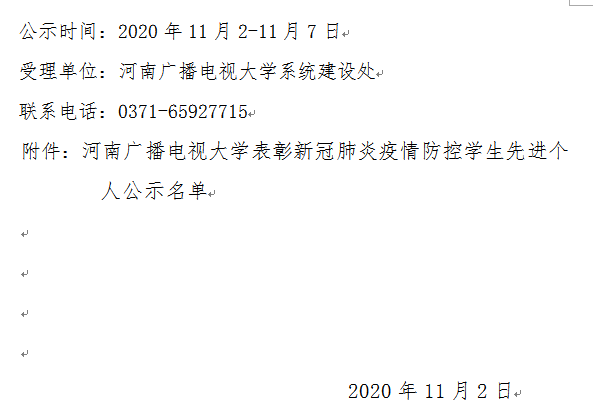 据《河南广播电视大学关于表彰新冠肺炎疫情防控员工先进个人的公示》省校系建函〔2020〕30 号文件,公司员工王文勇、梁军获表彰。