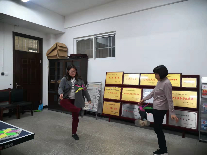 为丰富公司教师的课余文化生活,倡导“每天健身一小时,健康生活一辈子”,全面推进公司健身运动的深入开展,增强教师的身体素质和凝聚力,构建“和谐校园”,2021年11月18日下午四点半,yl8858永利分工会在党员活动室举行了2021年趣味运动会。趣味运动会设置了三个项目:跳绳、踢毽子、跳棋,教职工们积极参加比赛,彼此相互加油与喝彩。本次活动集健身、竞技、娱乐、观赏于一体,赛场上,大家热情饱满,竞争激烈,展现了职工拼搏向上的良好风貌,增进了职工间的交流与友谊。