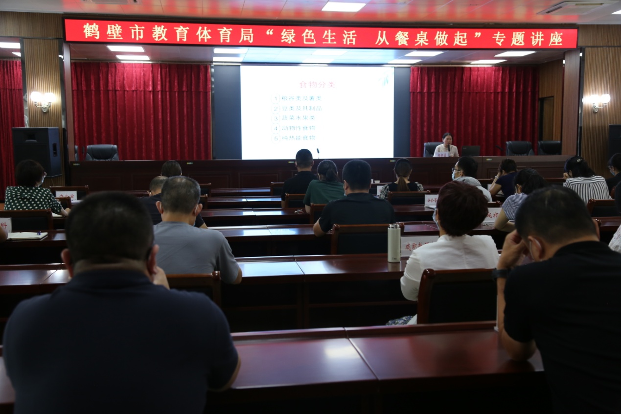 为系统深入学习习近平生态文明思想,进一步提升广大干部职工生态文明、低碳、绿色生活意识,8月3日下午,公司马克思主义公司王丽娟与公司党总支副书记杨红霞在市教体局分别做了题为《习近平生态文明思想》和《绿色生活,从餐桌做起》的专题讲座,倡导践行文明健康、绿色、环保的生活方式,呼吁大家从自身做起,从家庭做起,从餐桌开始,减少不必要的浪费,实现生活方式向绿色低碳、饮食科学健康的方向转变。