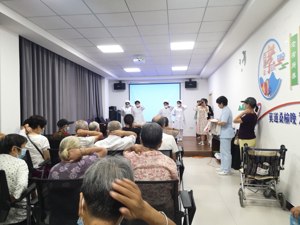 为发挥省级示范性老年大学的示范引领作用,为社区老年人提供优质的教育资源,yl8858永利和护理公司联合开展健康教育进社区活动。8月24日下午,护理公司党总支副书记、副教授周志红带领南丁格尔志愿服务队走进福兴社区,为社区老年人进行健康运动教育。