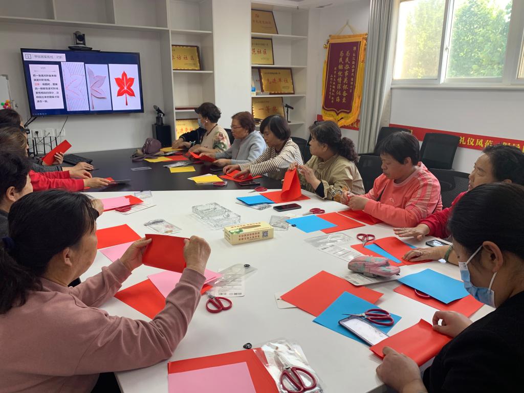 课堂上,公司人文教育公司副教授段国玲老师首先给老人们普及剪纸的概念、基本技法、基本要求等知识,让大家对剪纸有了更深一步的了解。随后,段老师向老年学员们现场展示折纸步骤与绘制的图案,并仔细地教学员们动手剪裁,老人们学着将纸张进行折叠,在纸上绘制图案,全神贯注的剪裁,最终一张张属于自己的精美剪纸作品就完成了。
