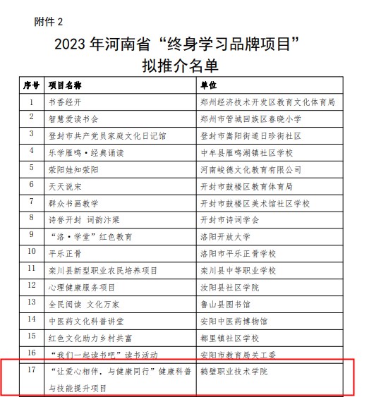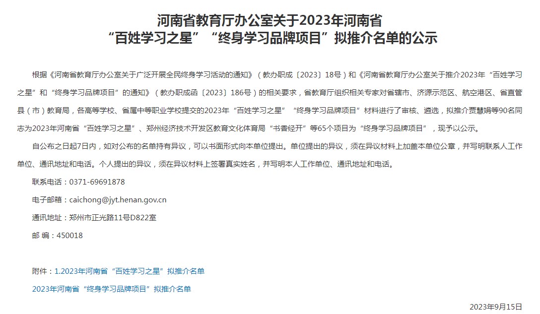 2023年河南省“百姓学习之星”“终身学习品牌项目”拟推介名单公示