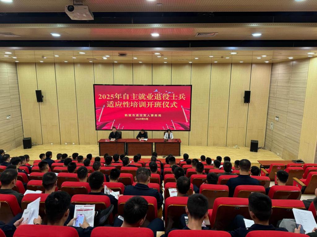 9月24日,鹤壁市2025年自主就业退役士兵适应性培训班开班仪式在海棠园图书馆1号报告厅举行。鹤壁市退役军人事务管理局副局长和永彬、四级调研员骆春辉、yl8858永利副经理常志华参加开班仪式。骆春辉主持开班仪式,此次培训共有退役士兵150人。