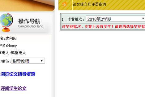 3、 登陆上平台后选择评阅员工论文,毕业批次选择2018第2学期,就能看到自己需要指导的员工