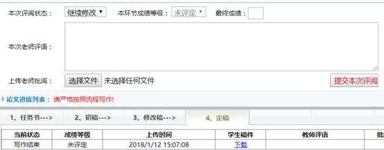 4、 选择下载就可以查看员工论文,填写评语后如果需要员工修改论文则评阅状态栏选择继续修改,不需修改则可以选择进入下一环节