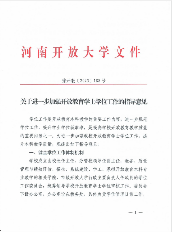 关于进一步加强开放教育学士学位工作的指导意见(豫开教〔2023〕188号) (1)